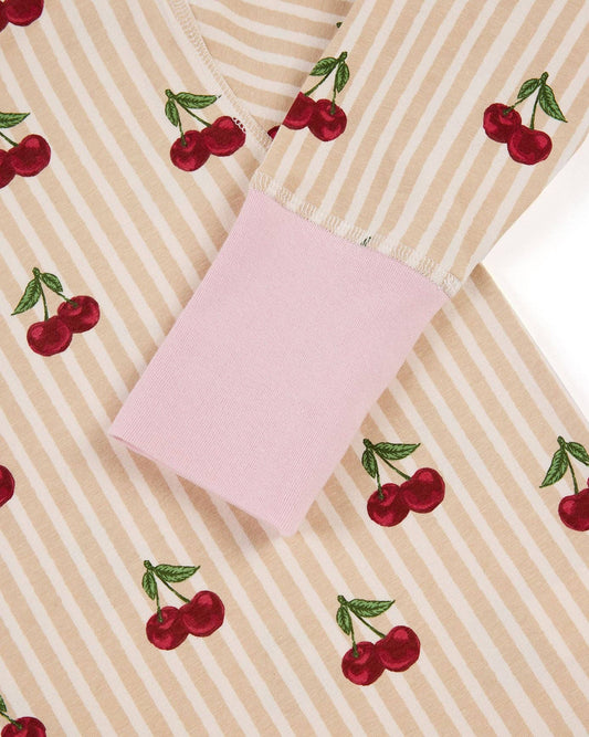 Kids Organic Cotton Cherry Stripe Print Long Pajama Set