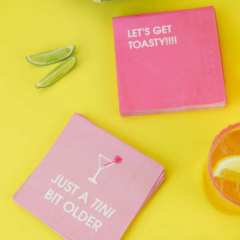 Our Just a Tini Bit Older Cocktail Napkins catch spills and add fun to your party with cheeky sayings. Made from sturdy paper, they’re perfect for any drink and sure to get your guests laughing.