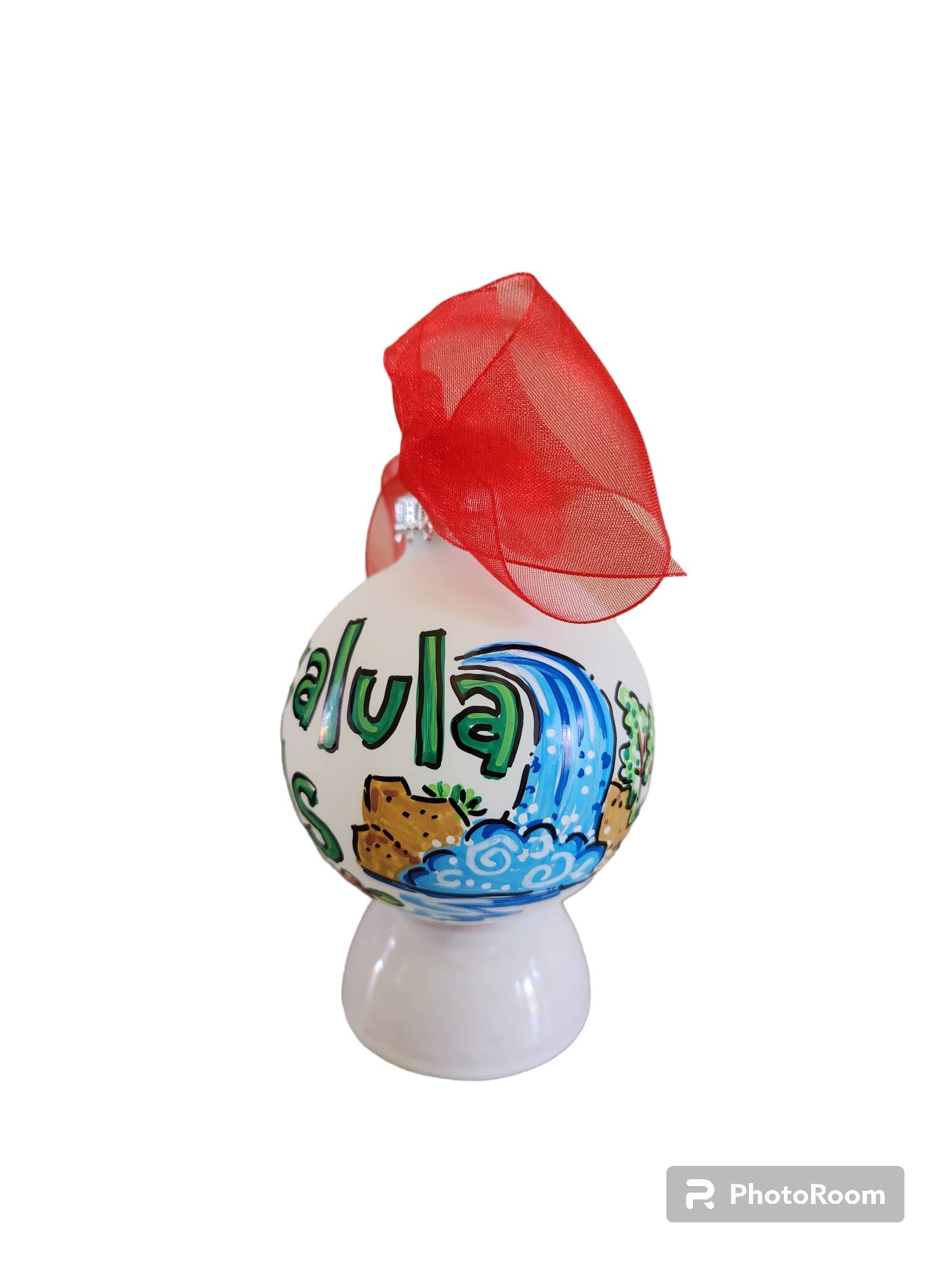 Show off Mount Prospect with this hand-painted frosted glass ornament. It comes with a matching bow and ribbon.