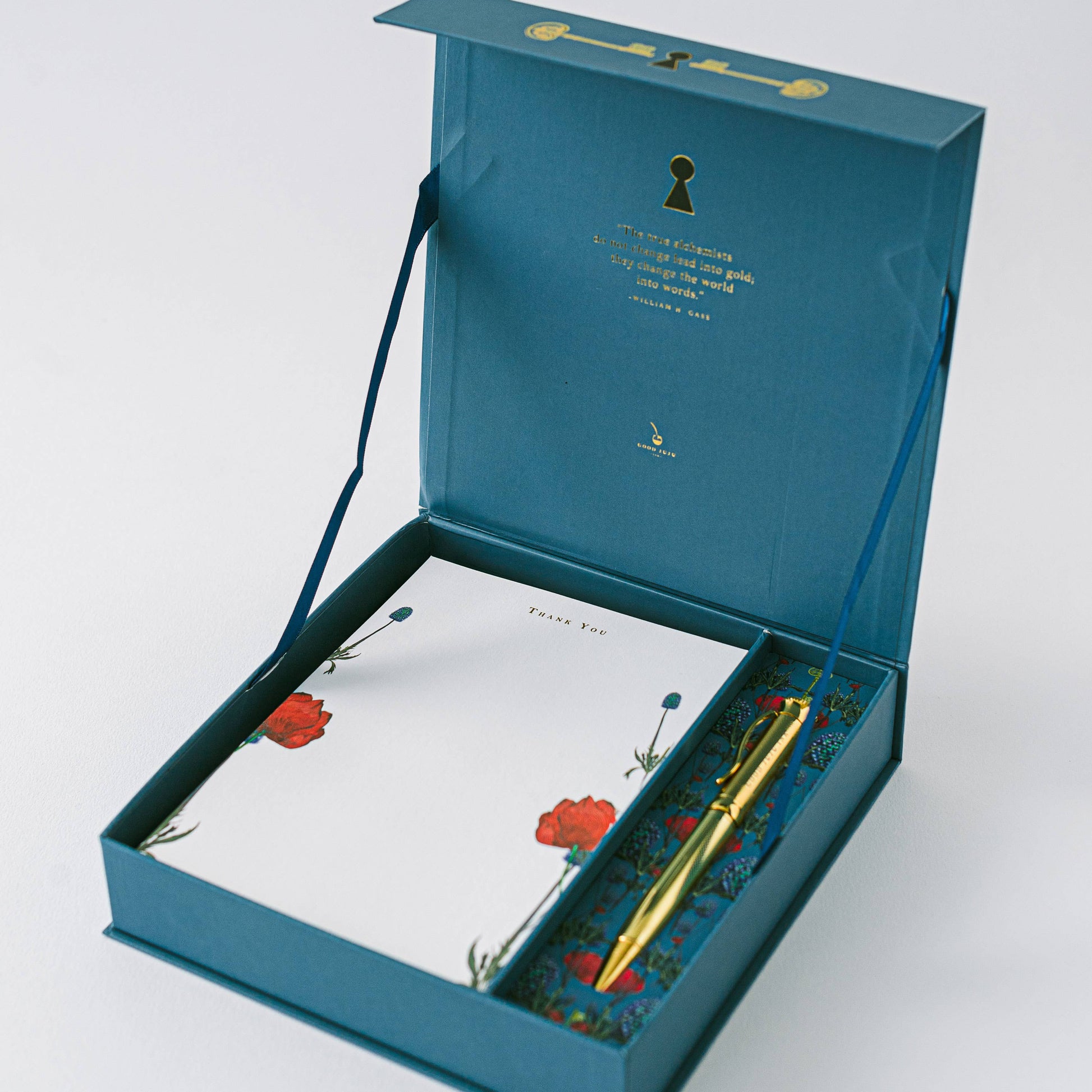 - 20 gold foil-stamped, ultra luxurious duplexed writing sheets