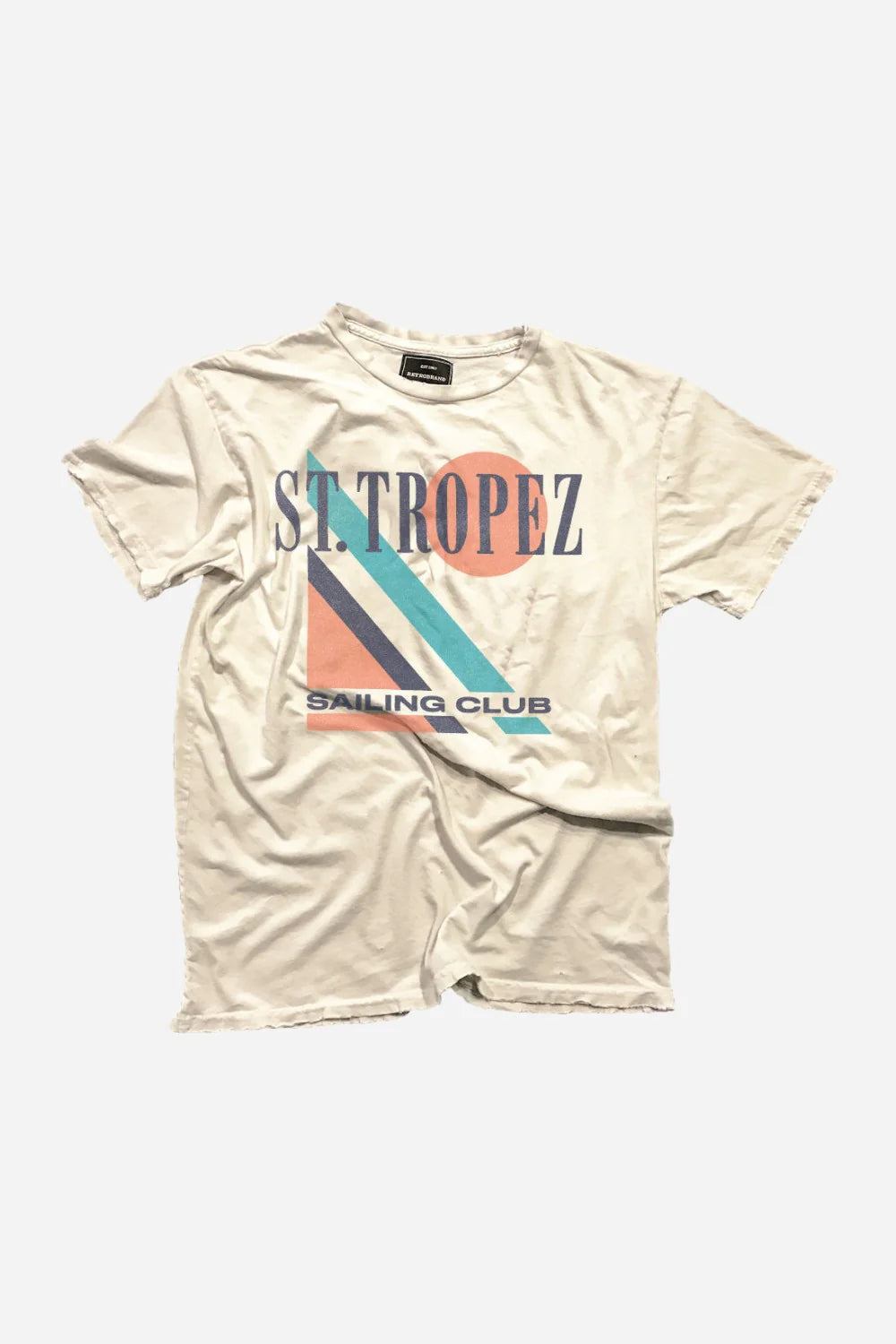 The true definition of an effortless essential, this cool and classic tee is featured in a vintage-inspired silhouette with worn St. Tropez graphic at front for a true lived-in look.
